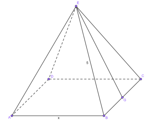 Mając dany kwadrat oraz wiedząc, że jest podstawą ostrosłupa prostego, którego krawędź boczna jest równa 5, a suma powierzchni wszystkich ścian wynosi 16, wyznacz miarę krawędzi podstawy.