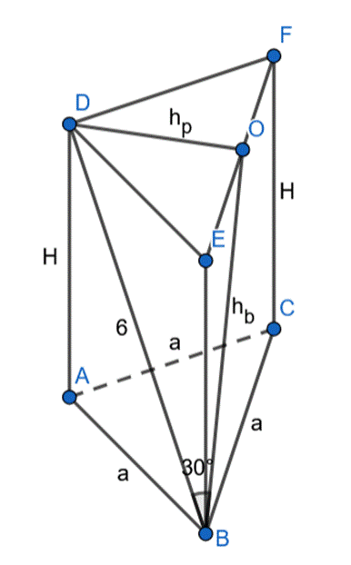 i wyznacz jego długość, a następnie z twierdzenia Pitagorasa w trójkącie ABD, aby obliczyć wysokość graniastosłupa. Na koniec obliczy objętość tej bryły.