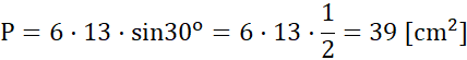 Należy obliczyć pole danego równoległoboku, wiedząc, że jego sąsiednie boki mają długość 6 cm i 13 cm oraz kąt ostry między bokami wynosi