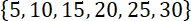 Pary spełniające równanie: (5, 6), (10, 5), (15, 4), (20, 3), (25, 2), (30, 1)