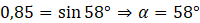 Oblicz miarę kąta wypukłego 𝛼, korzystając z tablic trygonometrycznych lub kalkulatora, i podaj wynik z dokładnością do 1 stopnia.