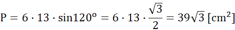 Należy obliczyć pole danego równoległoboku, wiedząc, że jego sąsiednie boki mają długość 6 cm i 13 cm oraz kąt między bokami wynosi