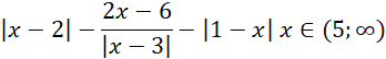 Jako że x jest większe od 5 to jeśli odejmiemy od niego 2, otrzymamy liczbę dodatnią. W takim razie pierwsze wyrażenie jest dodatnie.