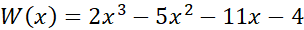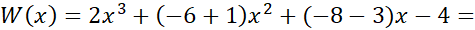 Wielomian początkowy jest wielomianem stopnia trzeciego, a dzielnik wielomianem stopnia drugiego. Stąd wiemy, że dzielna ilorazu musi być wielomianem drugiego stopnia: