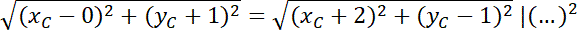 W tym zadaniu podaj, ile wynoszą współrzędne punktu C należącego do okręgu o równaniu