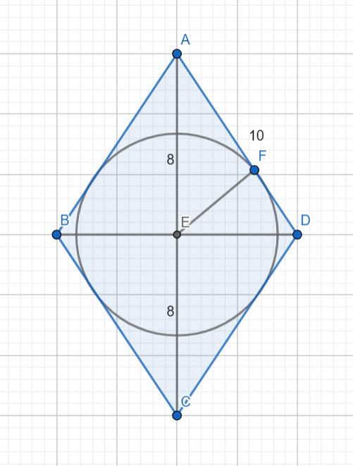 Skorzystaj z twierdzenia Pitagorasa, aby wyliczyć długość odcinka ED. Zauważ, że trójkąty AED i EFD są podobne jako trójkąty prostokątne o wspólnym kącie. Utwórz proporcję, aby wyliczyć promień.