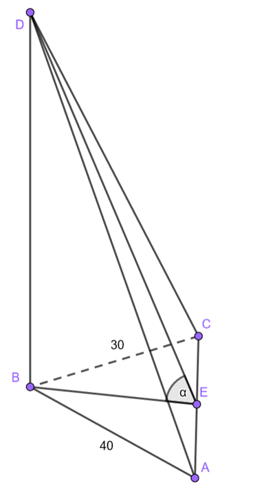Oblicz długość odcinka BD, wykorzystując podaną wartość tg α: