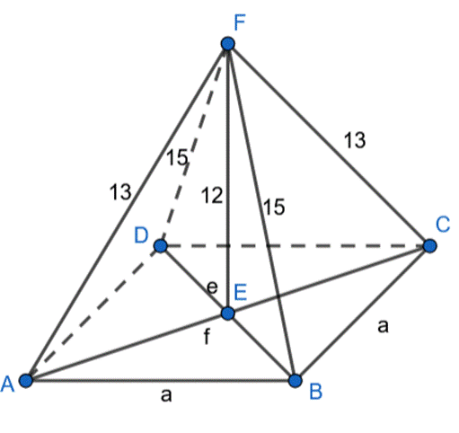 Wyznacz objętość tego ostrosłupa, wiedząc, że jego wysokość jest równa 12 cm, którego podstawą jest romb, a spodkiem wysokości tego ostrosłupa jest punkt przecięcia się przekątnych rombu. Dwie krawędzie boczne ostrosłupa mają długość 15 cm, a pozostałe dwie - 13 cm.