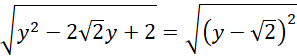 Aby wyjąć podane wyrażenie spod pierwiastka musimy znaleźć sposób, aby zapisać je jako wyrażenie podniesione do kwadratu. Zauważmy, że wyrażenie to można przekształcić przy pomocy wzoru skróconego mnożenia na kwadrat różnicy: