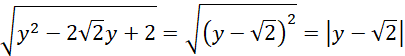 Wyrażenie pod pierwiastkiem jest teraz podniesione do kwadratu. W takim razie możemy wyjąć je spod pierwiastka skracając kwadrat z pierwiastkiem pamiętając, że musi zostać ono umieszczone wewnątrz wartości bezwzględnej, ponieważ: