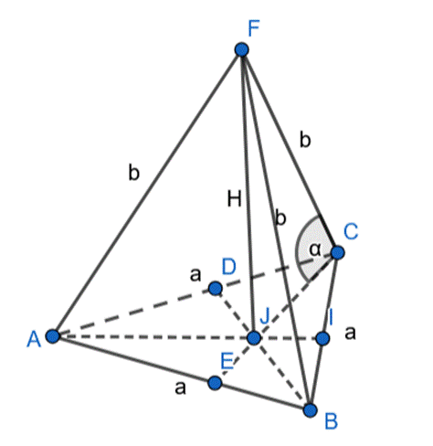 oraz funkcji trygonometrycznych w trójkącie FJC i ze wzoru na cosinus wyznacz wartość krawędzi bocznej. Następnie skorzystaj z twierdzenia Pitagorasa w trójkącie FJC i wyznacz wysokości ostrosłupa. Na koniec pod wzór na objętość podstaw znane wartości i z powstałego równania wyznacz wartość