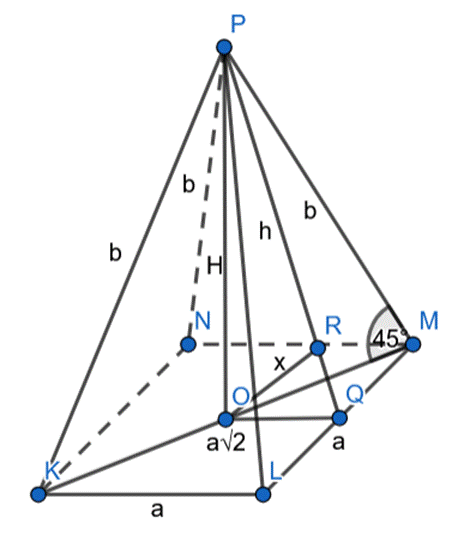 Skorzystaj z twierdzenia Pitagorasa, aby obliczyć wysokość ściany bocznej ostrosłupa, a następnie skorzystaj ze wzoru na pole trójkąta QOP, podstaw znane wartości i z powstałego równania wyznacz wartość
