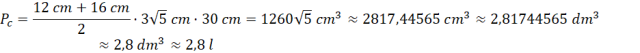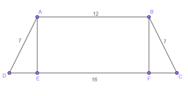 Stwórz rysunek pomocniczy podstawy. Zwróć uwagę na to, że odcinki DE oraz CF mają takie same długości, a więc aby obliczyć ich długość musisz odjąć od dłuższej podstawy krótszą i podzielić wynik na dwa. Następnie oblicz długość wysokości trapezu korzystając z twierdzenia Pitagorasa, a na końcu oblicz objętość ze wzoru