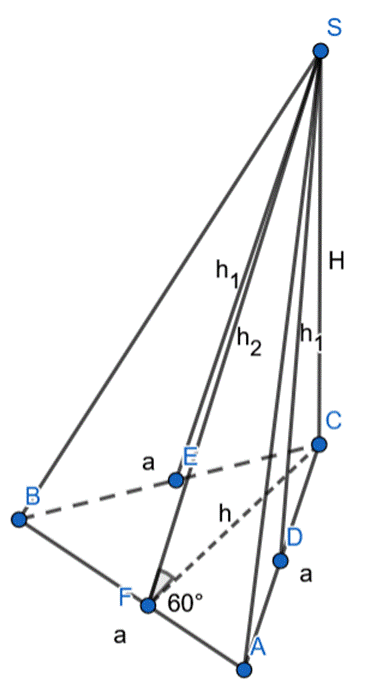 razy dłuższa od długości boku naprzeciwko najmniejszego kąta. Na tej podstawie wyznacz długość krawędzi podstawy i wysokości ostrosłupa. Następnie skorzystaj ze wzoru na objętość, podstaw znane wartości i wyznacz długość krawędzi podstaw. Na koniec z twierdzenia Pitagorasa w trójkącie CFS wyznacz długość przeciwprostokątnej i pole całkowite ostrosłupa.