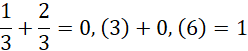 Podaj przykładowe liczby o nieskończonych rozwinięciach okresowych, których suma jest liczbą całkowitą.