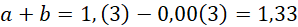 Podaj przykładowe liczby o nieskończonych rozwinięciach okresowych, których suma jest liczbą niecałkowitą o skończonym rozwinięciu dziesiętnym.