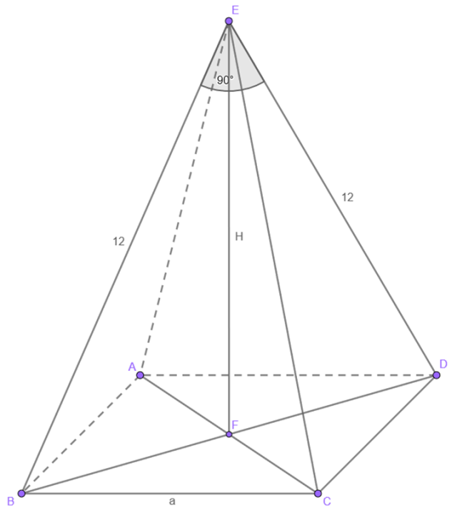 Stwórz rysunek pomocniczy, gdzie H to wysokość ostrosłupa i a to długość krawędzi podstawy: