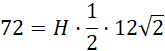 Stwórz rysunek pomocniczy. Zauważ, że trójkąt BDE to trójkąt prostokątny 45°, 45°, 90°, a więc możesz obliczyć długość odcinka BD, korzystając z zależności w tym trójkącie. Następnie oblicz pole BDE na dwa sposoby i wyznacz w ten sposób niewiadomą H. Odcinek BD jest także, przekątna kwadratu, a więc możesz obliczyć długość krawędzi podstawy. Na koniec oblicz objętość bryły ze wzoru