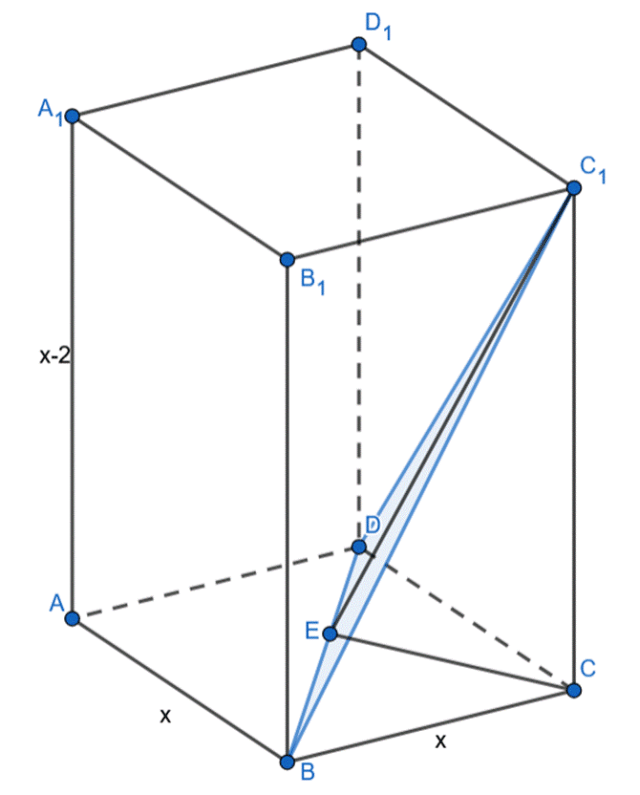 Wyznacz pole przekroju bryły wyznaczonego przez przekątną podstawy DB i wierzchołek C1, jeśli w graniastosłupie prawidłowym czworokątnym