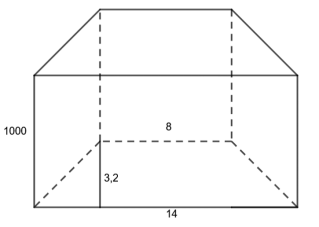 Wykonaj rysunek pomocniczy i oblicz objętość graniastosłupa o podstawie podanej na rysunku i wysokości długości 1 km.