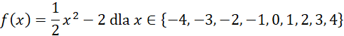 Zapisz wzór tej funkcji wyciągnięty z jej opisu. Następnie oblicz jej wartości dla każdego z argumentów z dziedziny i zapisz je jako elementy zbioru wartości tej funkcji.