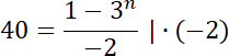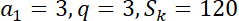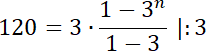 Suma elementów tego ciągu ma być równa 120. Skorzystaj ze wzoru na n sumę początkowych wyrazów ciągu geometrycznego: