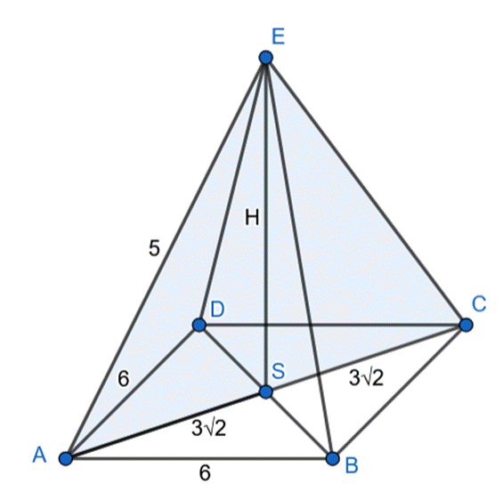 Wyznacz długość boków przekroju ostrosłupa wyznaczonego prze przeciwległe krawędzie boczne, poprowadzone ze wspólnego wierzchołka, jeśli w ostrosłupie prawidłowym czworokątnym krawędź podstawy ma długość 6 cm, a krawędź boczna - 5 cm.