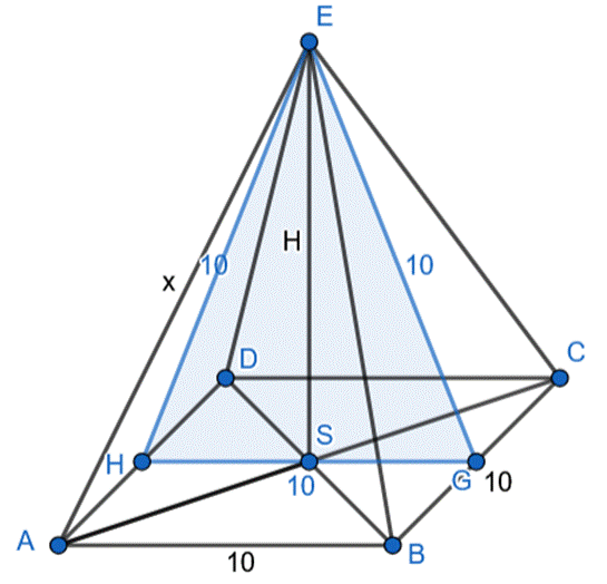 Wyznacz długość krawędzi bocznej ostrosłupa, jeśli długość jego krawędzi podstawy ostrosłupa prawidłowego czworokątnego wynosi 10 cm. Przekrój tego ostrosłupa płaszczyzną, przechodzącą przez wysokości przeciwległych ścian bocznych, jest trójkątem równobocznym.