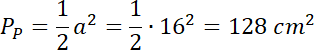 Następnie oblicz pole przekroju – trójkąta prostokątnego równoramiennego.