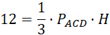 Objętość graniastosłupa zbudowanego na trójkącie ACD o wysokości H to: