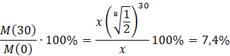 Skorzystaj ze wzoru na przyrost i oblicz ile procent substancji radioaktywnej pozostanie w organizmie pacjentki po upływie 30 dni.