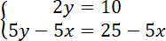 Układ jest układem nieoznaczonym. Jego rozwiązaniem graficznym jest wykres równania y = 5. Zbiór rozwiązań to: (x, 5),