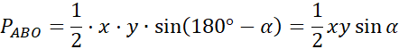 Aby rozwiązać to zadanie wykonaj rysunek pomocniczy, oznacz na nim długości odcinków i kąty. Zauważ, że otrzymane trójkąty są przystające (mają takie same kąty i boku), więc ich pola są sobie równe. Skorzystaj ze wzoru na pole trójkąta