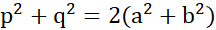 Punkt przecięcia przekątnych w rombie dzieli każdą z nich na połowy. Niech a, b to boki równoległoboku, zaś p i q to jego przekątne. Wówczas zachodzi: