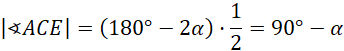 Trójkąt ACE jest równoramienny, więc kąt ACE ma miarę: