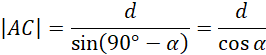 Oblicz długość AC, wykorzystując zależności trygonometryczne w trójkącie ACG: