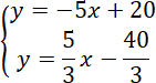 Wyznacz równania obu prostych przedstawionych na rysunku. Z wyznaczonych równań prostych stwórz układ równań z dwiema niewiadomymi. Punkt przecięcia prostych wyznacza rozwiązanie układu równań.