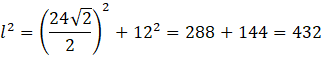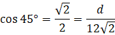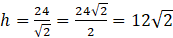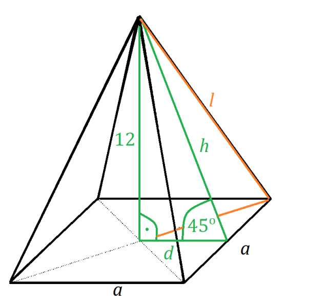 Oblicz długość krawędzi ostrosłupa prawidłowego czworokątnego, którego ściana boczna ma wysokość 12 cm i jest ona nachylona do powierzchni podstawy pod kątem 45º.