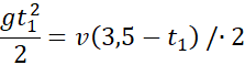 Wiadomym jest, że kamień porusza się z ruchem jednostajnie opóźnionym z prędkością początkową równą 0. Dźwięk porusza się ruchem jednostajnym, dlatego dla kamienia