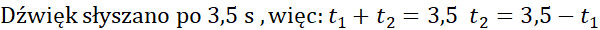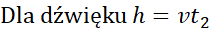 t1- czas spadania kamienia t2 – czas po jakim dotrze dźwięk do obserwatora.