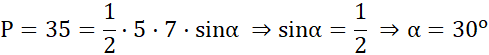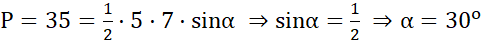 Należy udowodnić, że przekątne równoległoboku dzielą go na cztery trójkąty o równych polach. Następnie oblicz miarę kąta ostrego między przekątnymi wiedząc, że przekątne równoległoboku są równe 10 cm i 14 cm, a jest równe 35