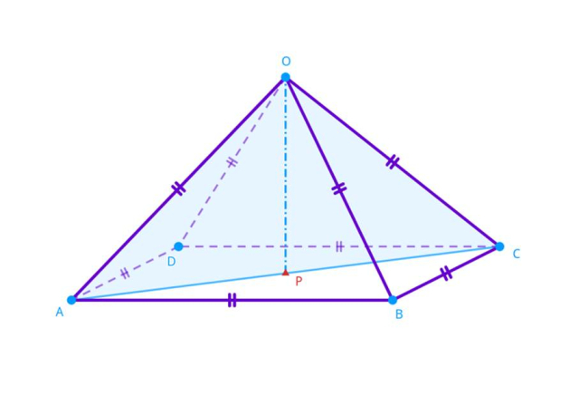 Wysokość ostrosłupa OP ma długość równą połowie przekątnej podstawy, czyli: