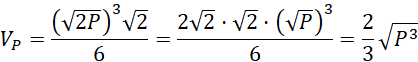 Dany jest pewien ostrosłup prawidłowy czworokątny o wszystkich krawędziach równej długości. Bryłę przecina płaszczyzna przechodząca przez przeciwległe krawędzie boczne, która tworzy przekrój o polu 𝑃. Oblicz objętość ostrosłupa względem pola przekroju.