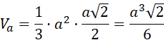 Objętość ostrosłupa wyrażona w długości krawędzi bocznej jest więc równa: