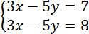 Dopisz drugie równanie tak, aby powstał układ sprzeczny, czyli układ, który nie ma rozwiązań.