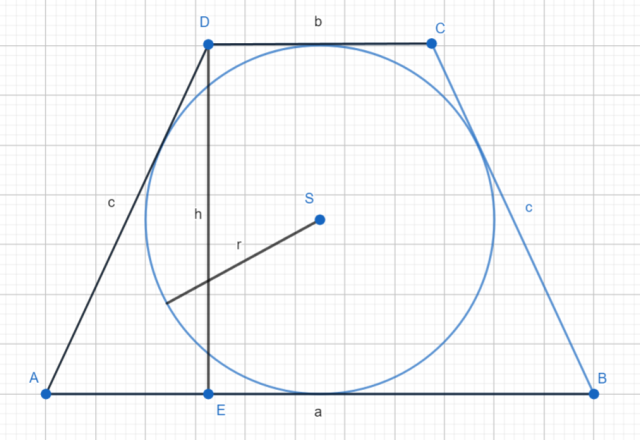 Udowodnij, że promień okręgu wpisanego w trapez równoramienny o podstawach długości a i b wyraża się wzorem