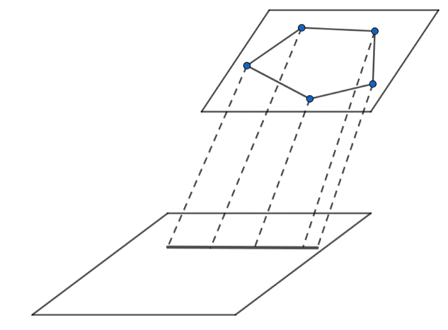 Ustal, jak położona prosta, wyznaczająca kierunek tego rzutowania, względem płaszczyzny, w pewnym rzucie równoległym na płaszczyznę obrazem pięciokąta jest odcinek.