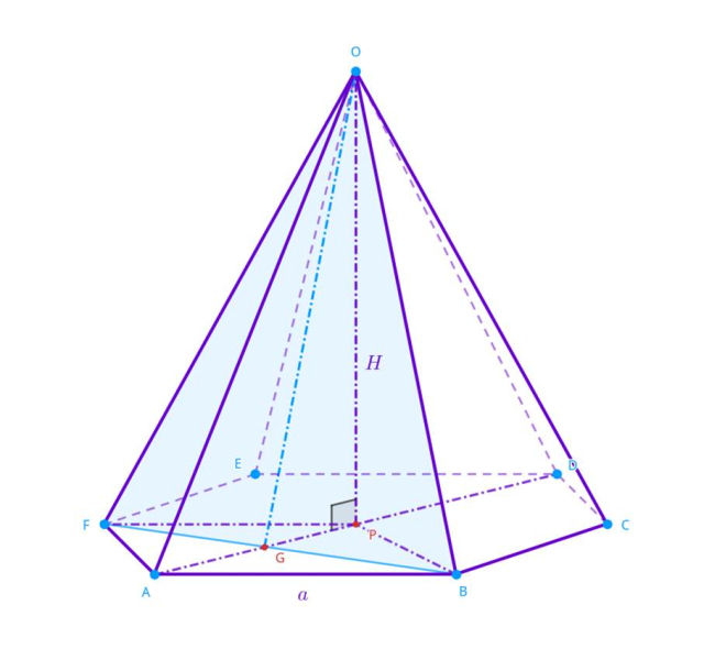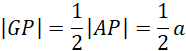 Punkt G to spodek wysokości trójkątów równobocznych w podstawie ostrosłupa, więc dzieli on odcinek AP na dwa przystające odcinki: AG i GP. Długość odcinka GP wynosi: