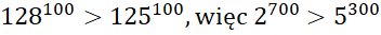 Obie liczby podane w treści zadania przedstaw w postaci potęg o jednakowym wykładniku: 100. Skorzystaj ze wzoru na potęgowanie potęgi, czyli iloczynu wykładników: . Na koniec porównaj ze sobą uzyskane liczby.