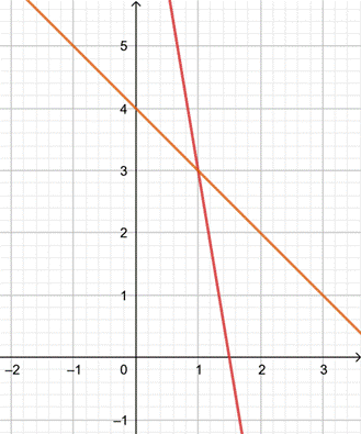 Aby rozwiązać układ metodą graficzną, narysuj oba równania w jednym układzie współrzędnych. Punkt przecięcia prostych wyznacza rozwiązanie układu równań.